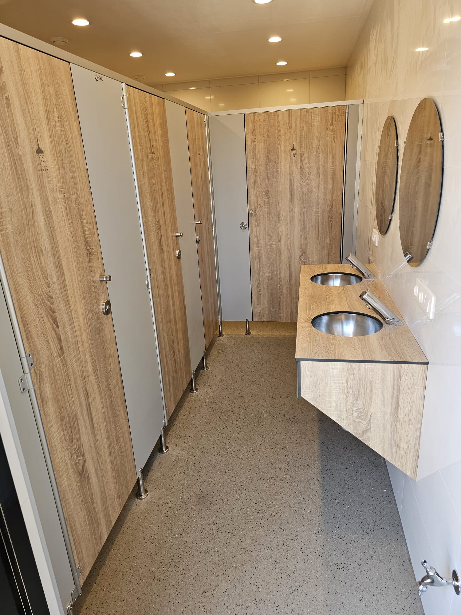 De cabines zijn afgestemd op de sfeer en uitstraling van De Miesboule: warm, natuurlijk en functioneel. Door gebruik te maken van houtaccenten en neutrale kleuren passen de nieuwe voorzieningen perfect in het groene landschap rondom de camping. De wandbekleding is onderhoudsvriendelijk en bestand tegen intensief gebruik, zonder concessies te doen aan het esthetische geheel. Het resultaat is een sfeervolle, praktische oplossing die het comfort voor gasten vergroot én het karakter van De Miesboule versterkt.