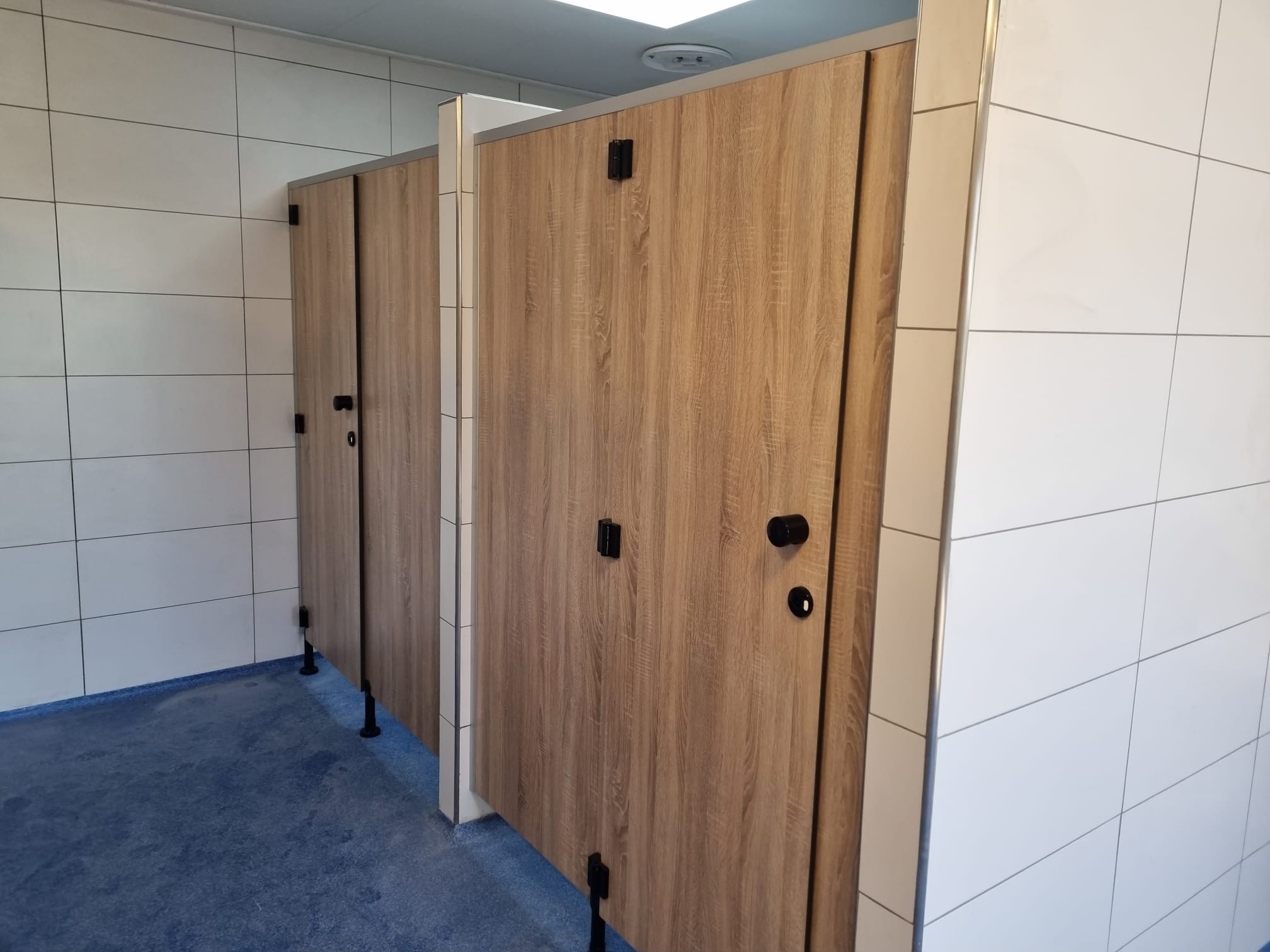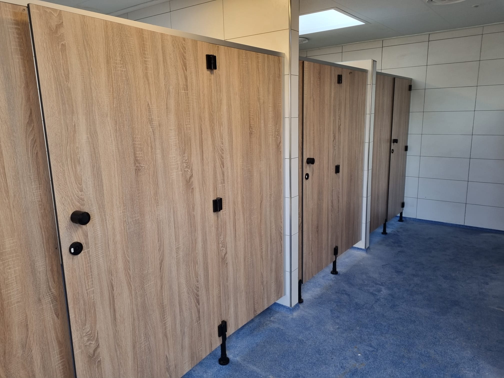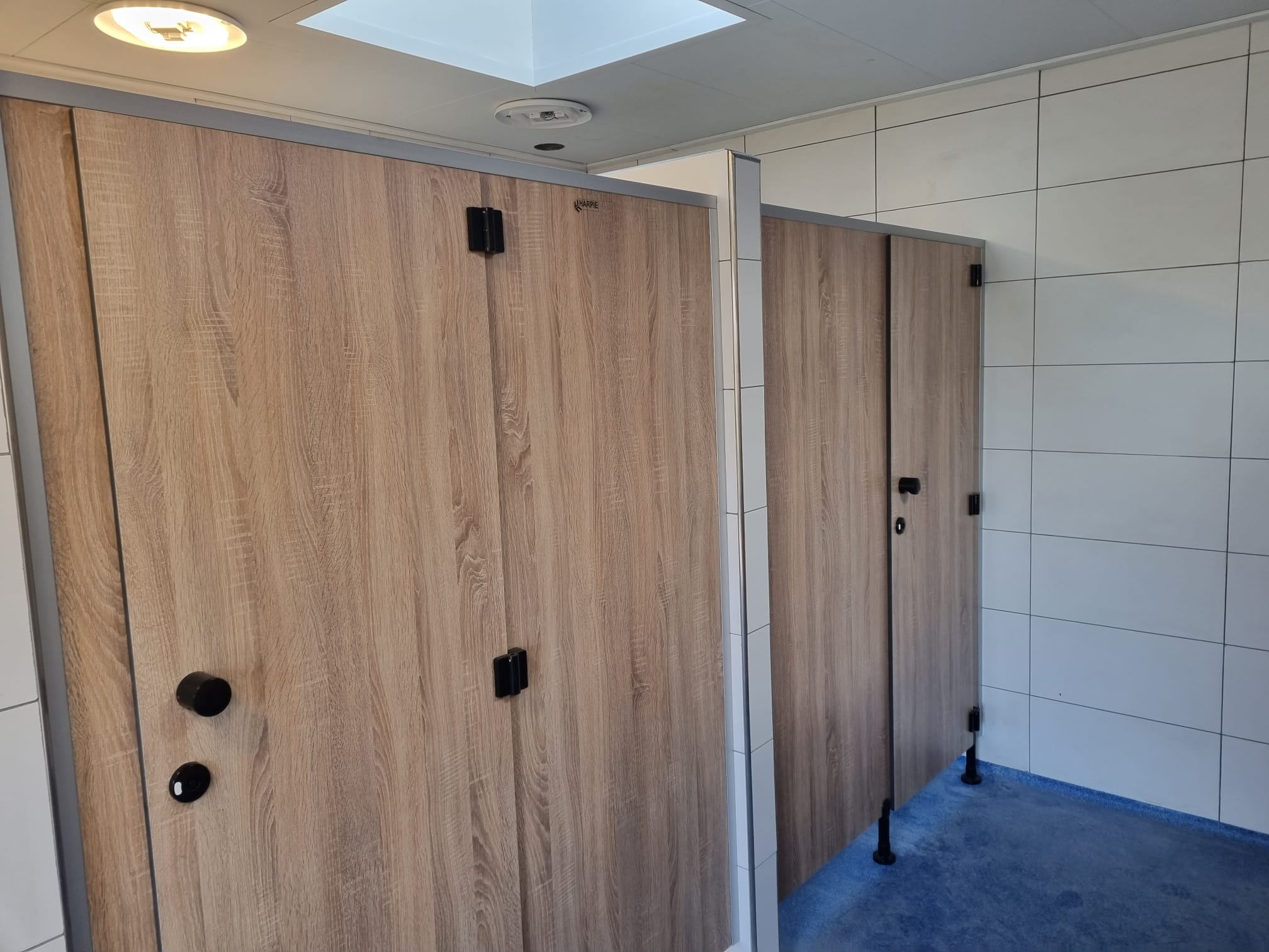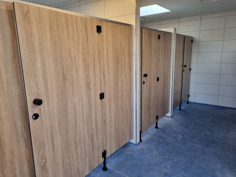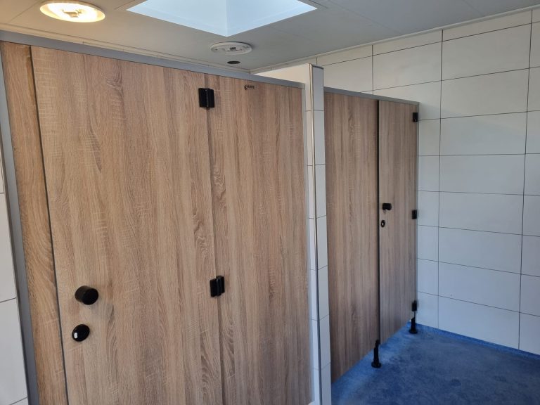 Dankzij de rustige, vriendelijke houtstructuur lijkt het alsof de douche- en toilethokjes helemaal tot leven komen. Het resultaat is eigentijds, stoer en biedt gasten een comfortabele, verzorgde en uitnodigende omgeving.