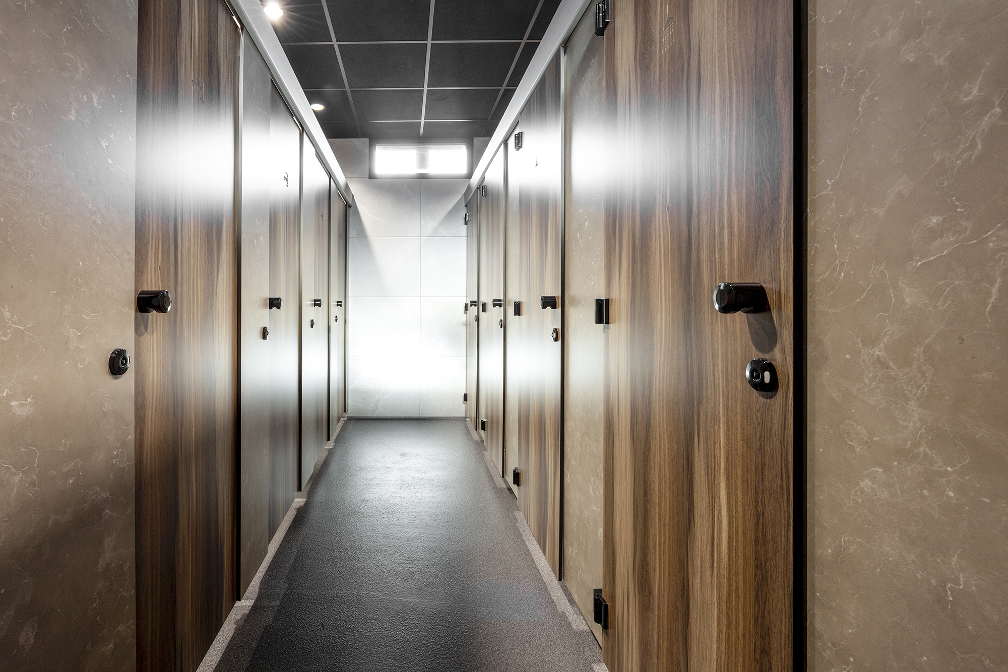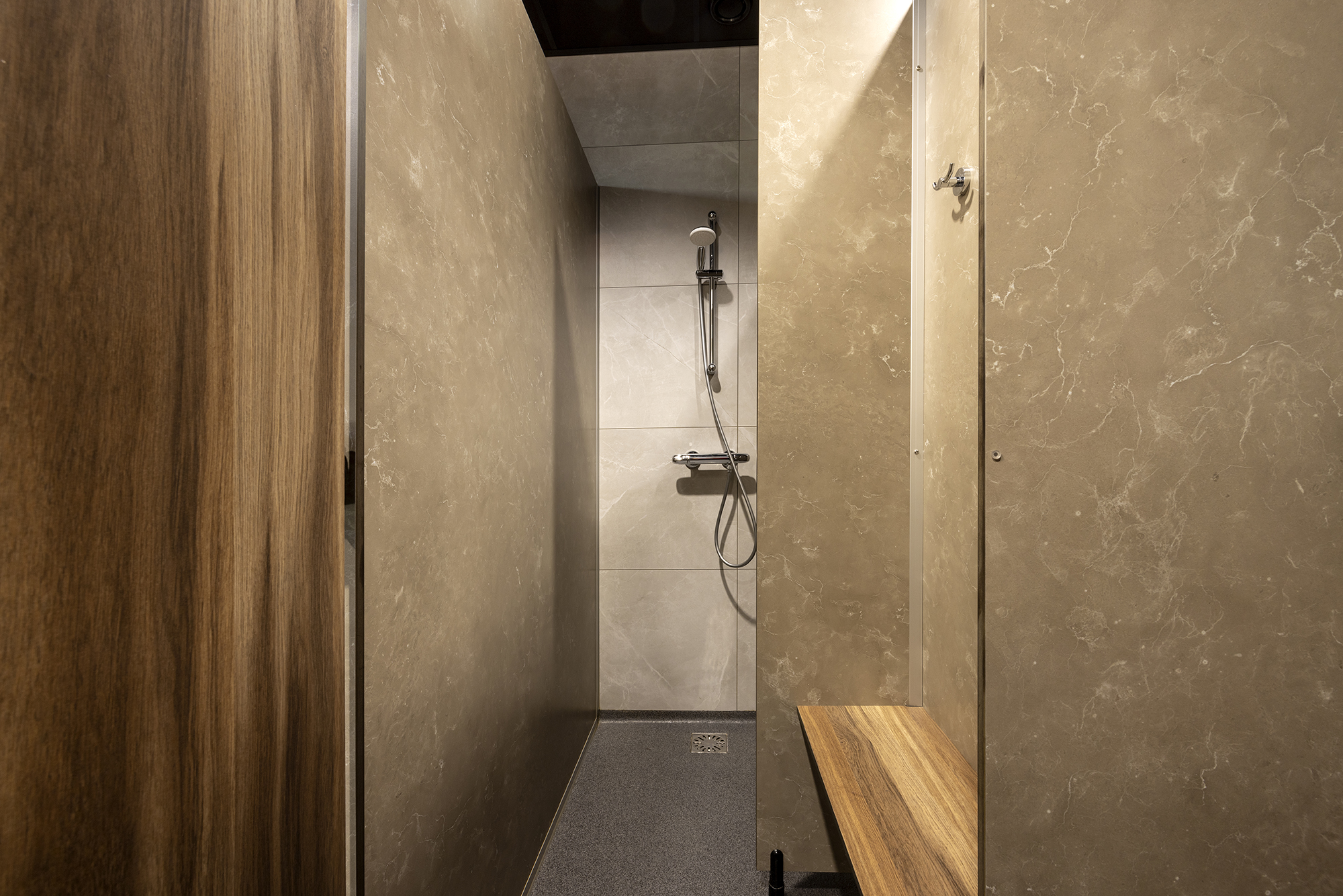 Landelijk, stoer, ruimte en natuur. Zomaar wat kernwoorden die goed passen bij dit sanitair gebouw. Samen met de camping uitbaters heeft Harpie uit Aarle-Rixtel getracht iets unieks neer te zetten. En hoe! Na de centrale inkom is er een mooie grote ruimte met alle douchecabines en was cabines. De volkern voorwanden zijn zwevend vanaf de vloer en zijn geconstrueerd i.c.m. een verzwaard boven profiel. De scheidingswanden staan in een U-profiel tot op de vloer om zo toch maximale privacy te waarborgen. Om het geheel esthetisch nog wat mooier te maken hebben we de tussenwanden terug laten vallen zodat deze vanaf de voorzijde niet zichtbaar zijn.