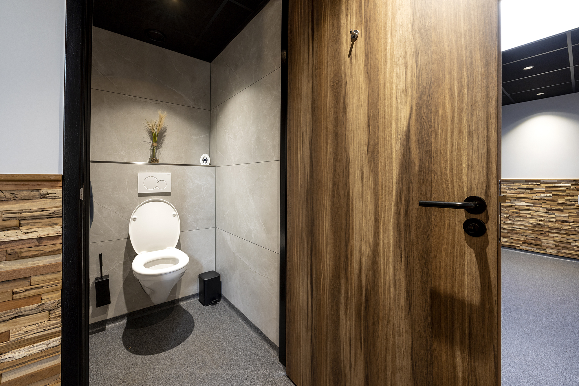 De gekozen kleur van de wanden en deuren beviel zo goed dat men dit heeft doorgetrokken in de rest van de binnendeuren in het gebouw. Ook deze zijn uitgevoerd in Chêne Colorado wat het geheel mooi laat samensmelten.